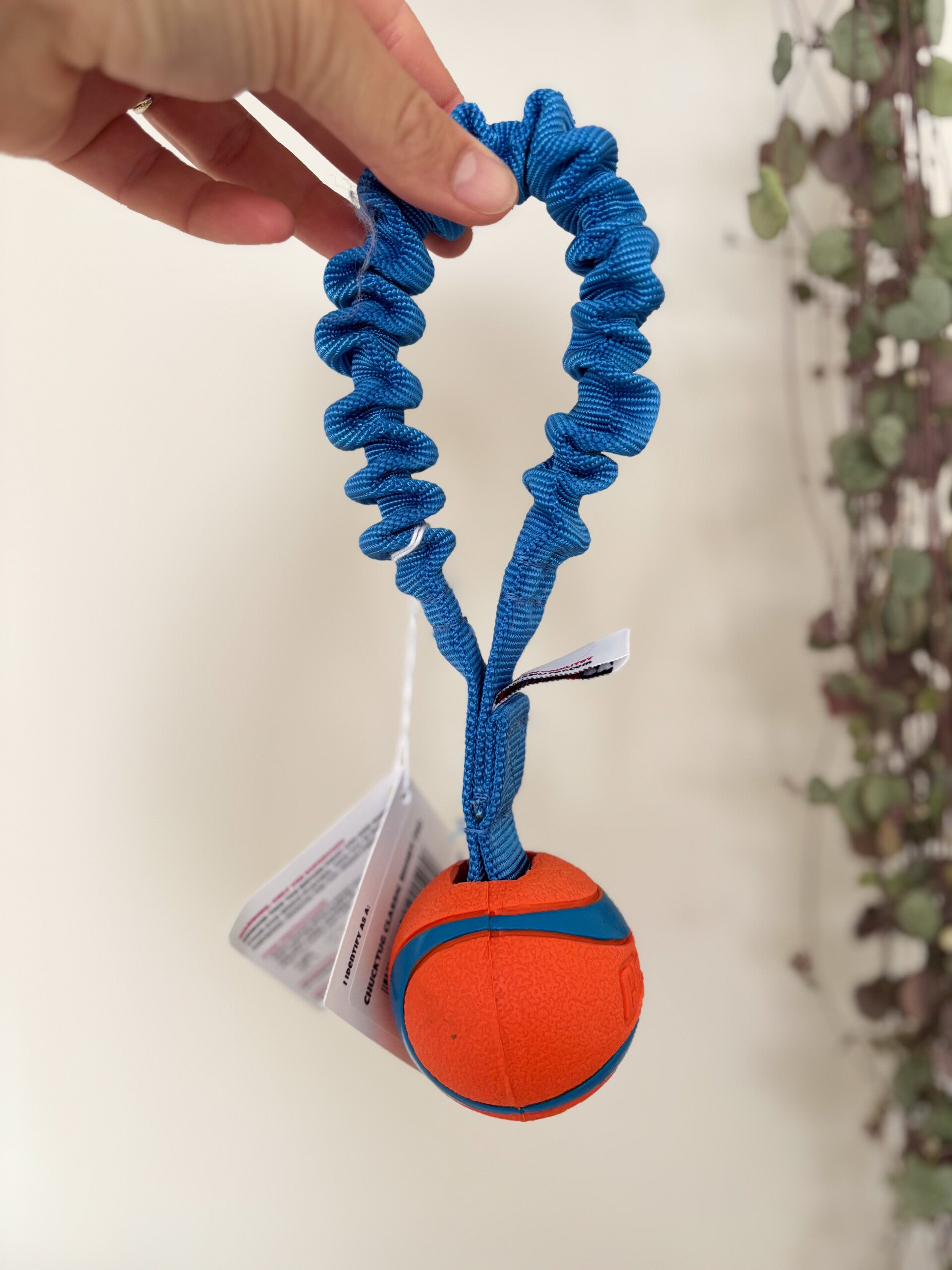 LET OP: Laat je hond nooit alleen met de Chucktug. Speel samen en berg het speeltje daarna goed op. Niet bedoelt om op te kauwen.